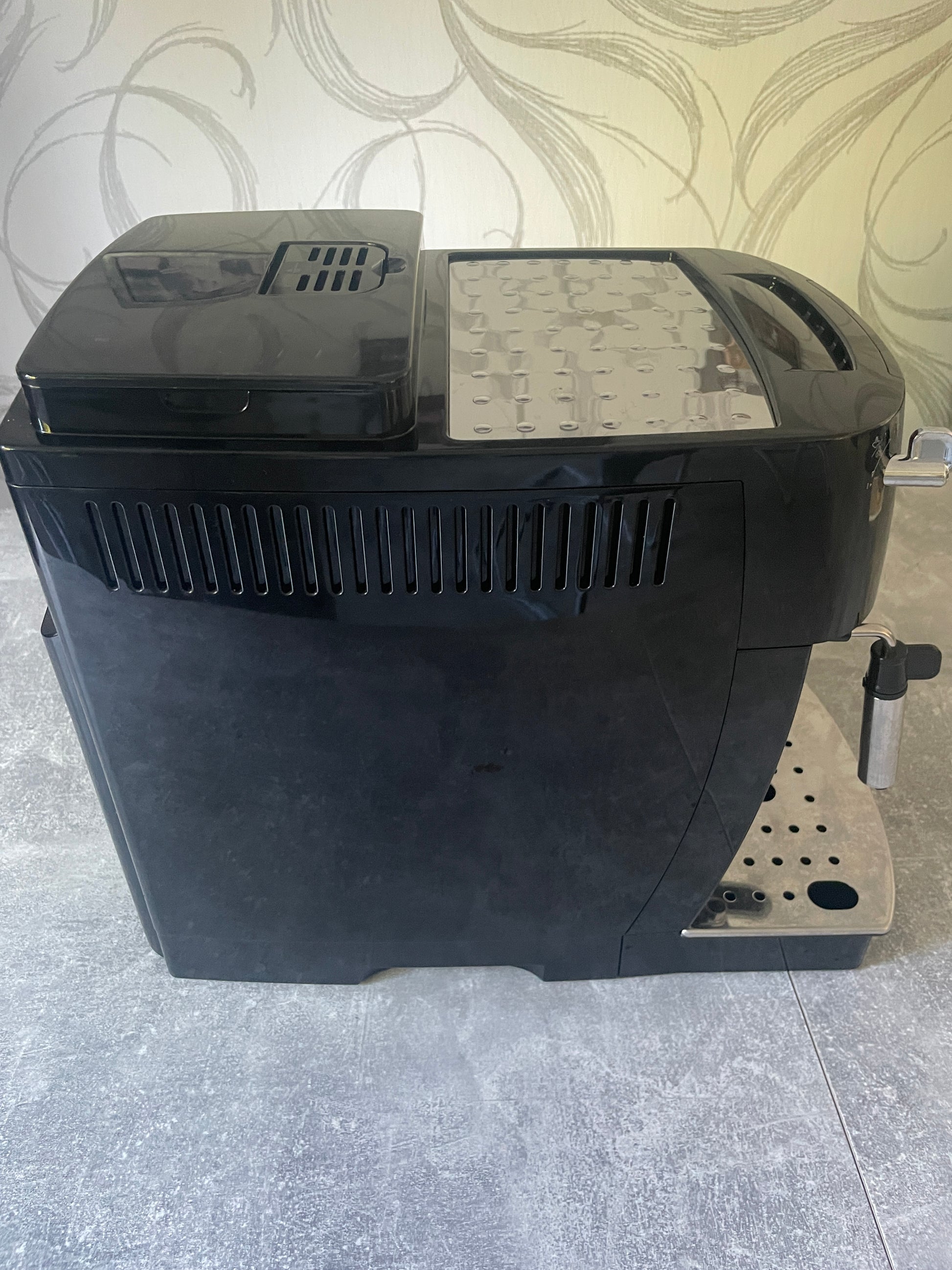 Zum Verkauf steht ein Kaffeevollautomat der Marke DeLonghi. Es ist eine ECAM 21.116 B. Der Kaffeevollautomat wurde komplett gereinigt und entkalkt. Er funktioniert und ist technisch in einem einwandfreien Zustand. Es sind Gebrauchsspuren am Gehäuse und Abtropfschale vorhanden.