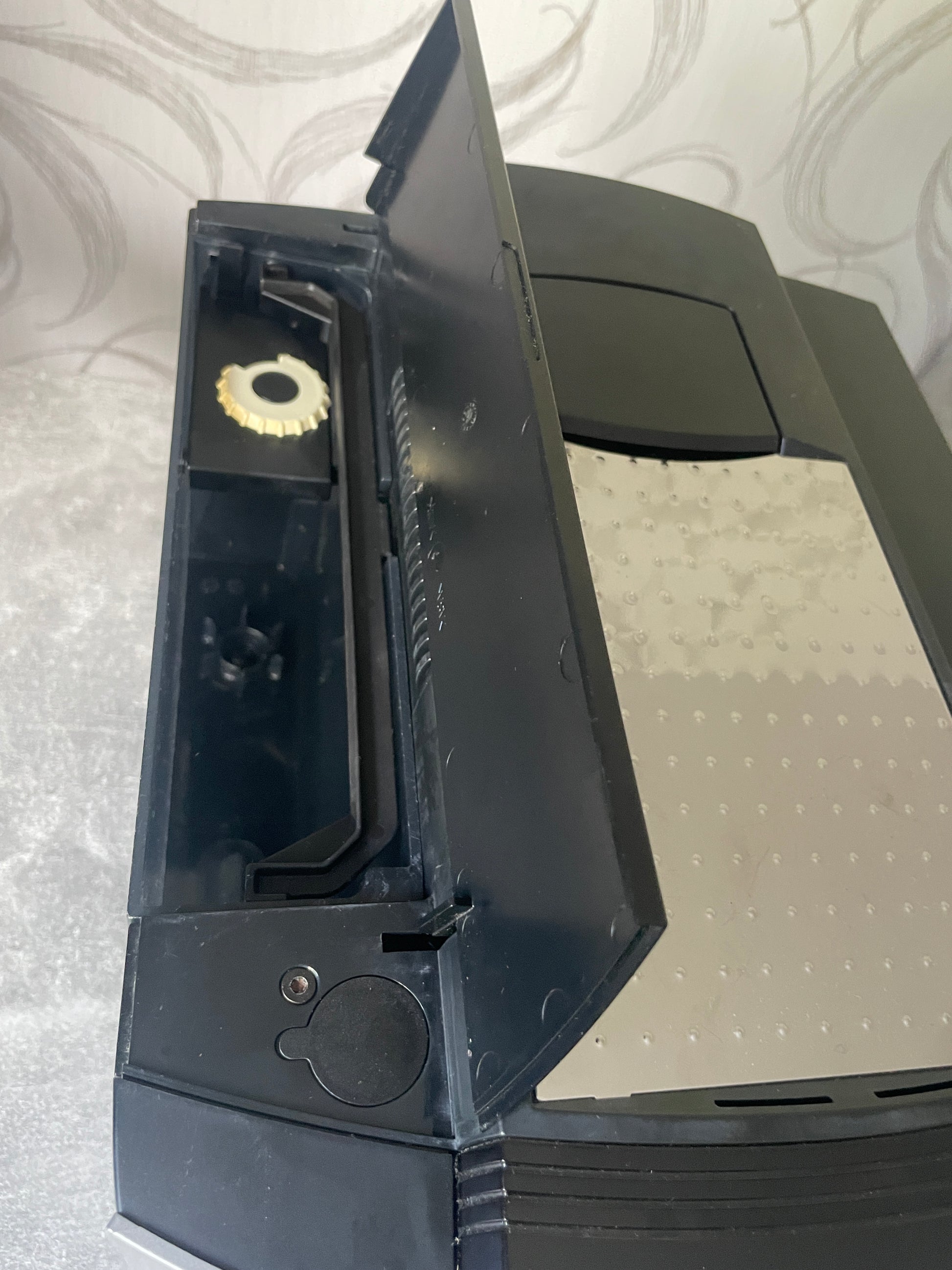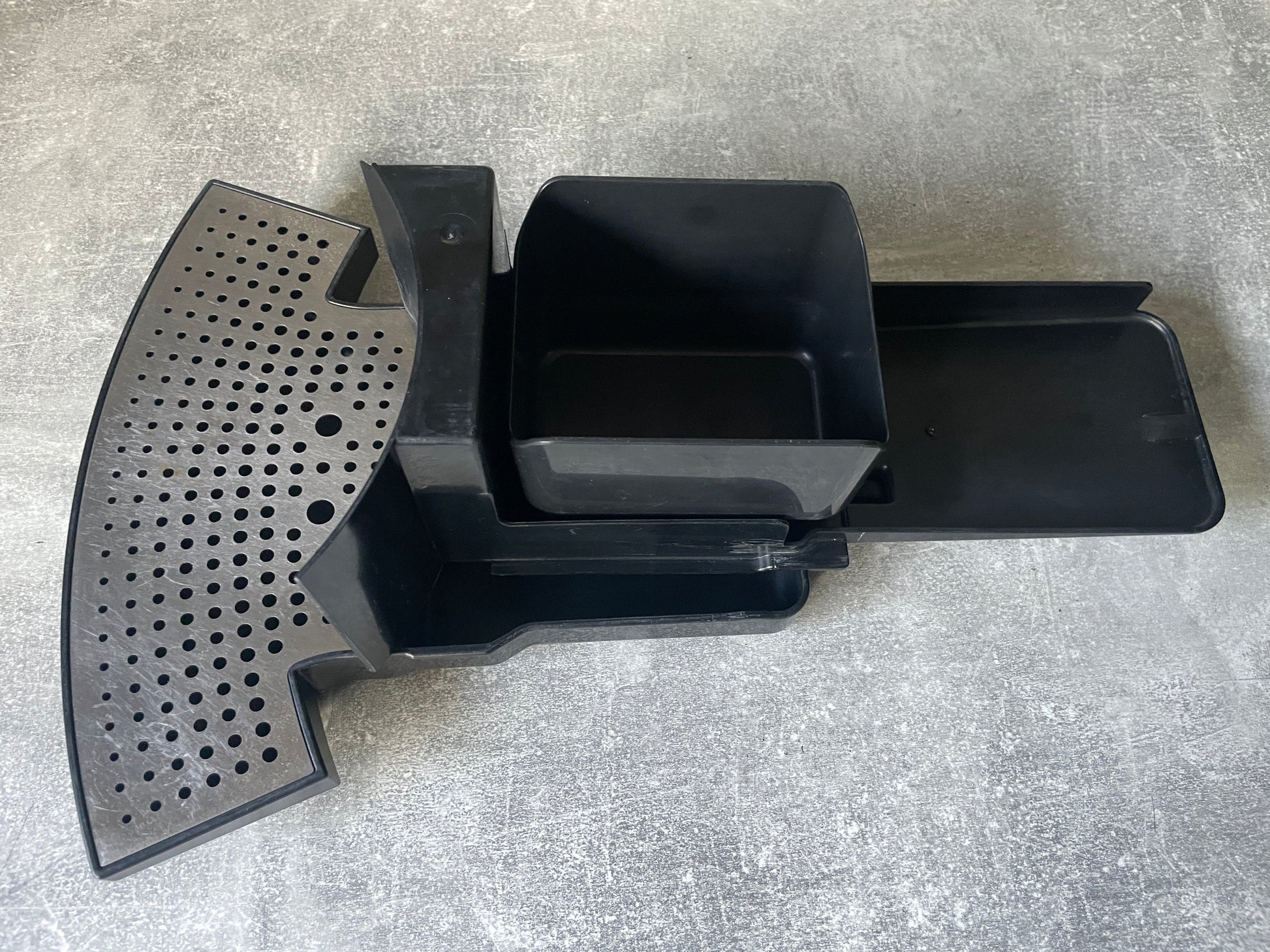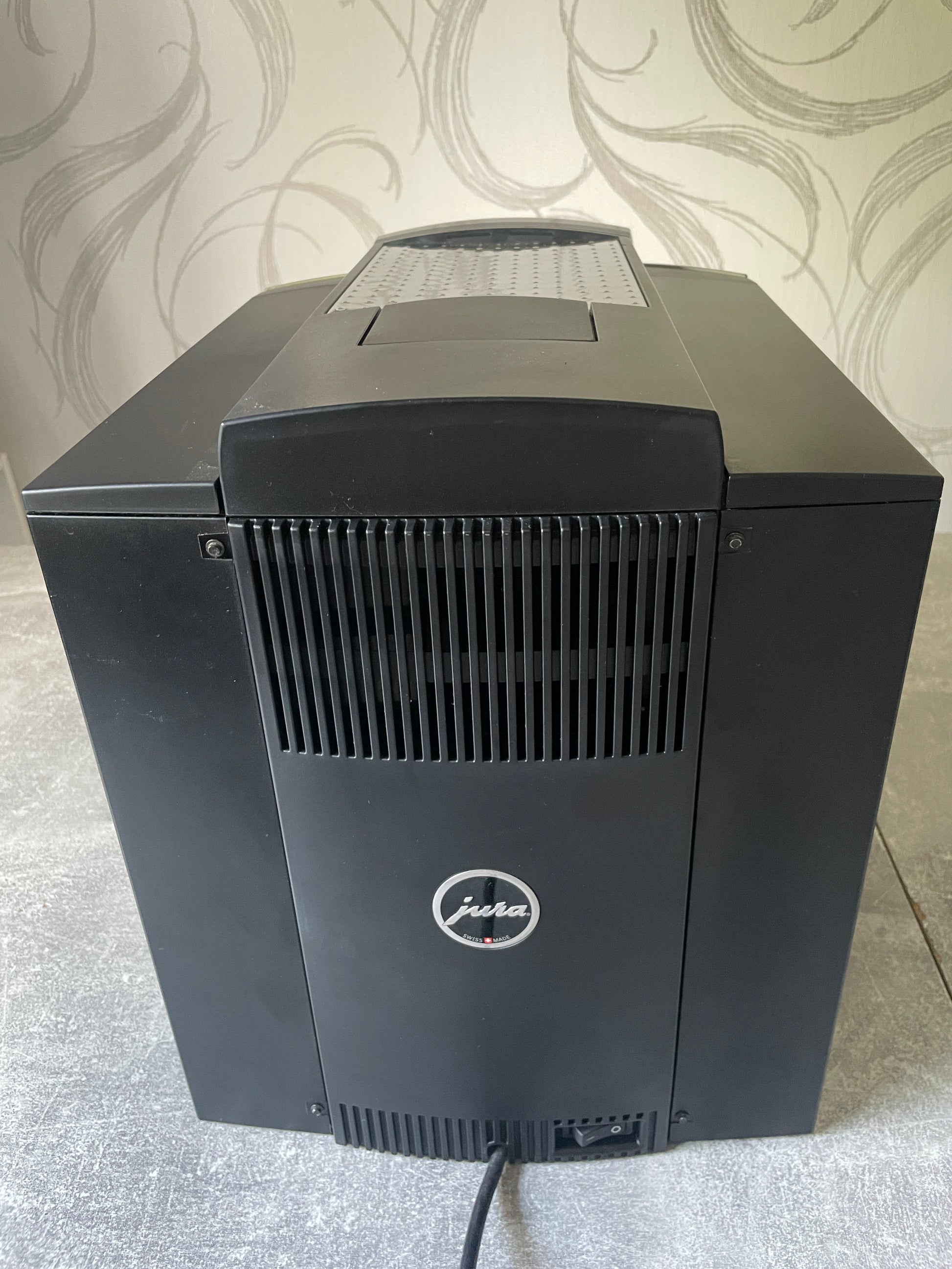 Der Kaffeevollautomat befindet sich in einem technisch einwandfreien Zustand. Die Maschine wurde komplett von innen und außen gereinigt. Die Brühgruppe wurde revidiert und alle Dichtungen erneuert. Eine Ecke von der Tresterschale ist Defekt.
